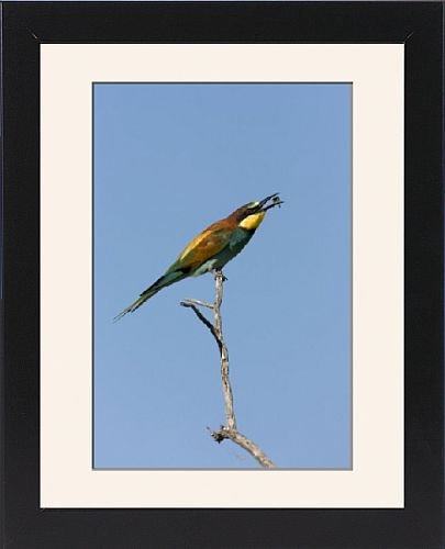 14 x11 Framed Print, Black Satin Frame Off-White Digital Mat. showing European Bee-Eater - Sitting on a perch flipping a wasp around. KAT-53 European Bee-Eater - Sitting on a perch flipping a wasp around Etosha National Park, Namibia, Africa Merops apiaster Karl Terblanche Please note that prints are for personal display purposes only and may not be reproduced in any way. prints ardea 44 (0) 20 8672 2067. Chosen by Ardea Wildlife Pets. 14